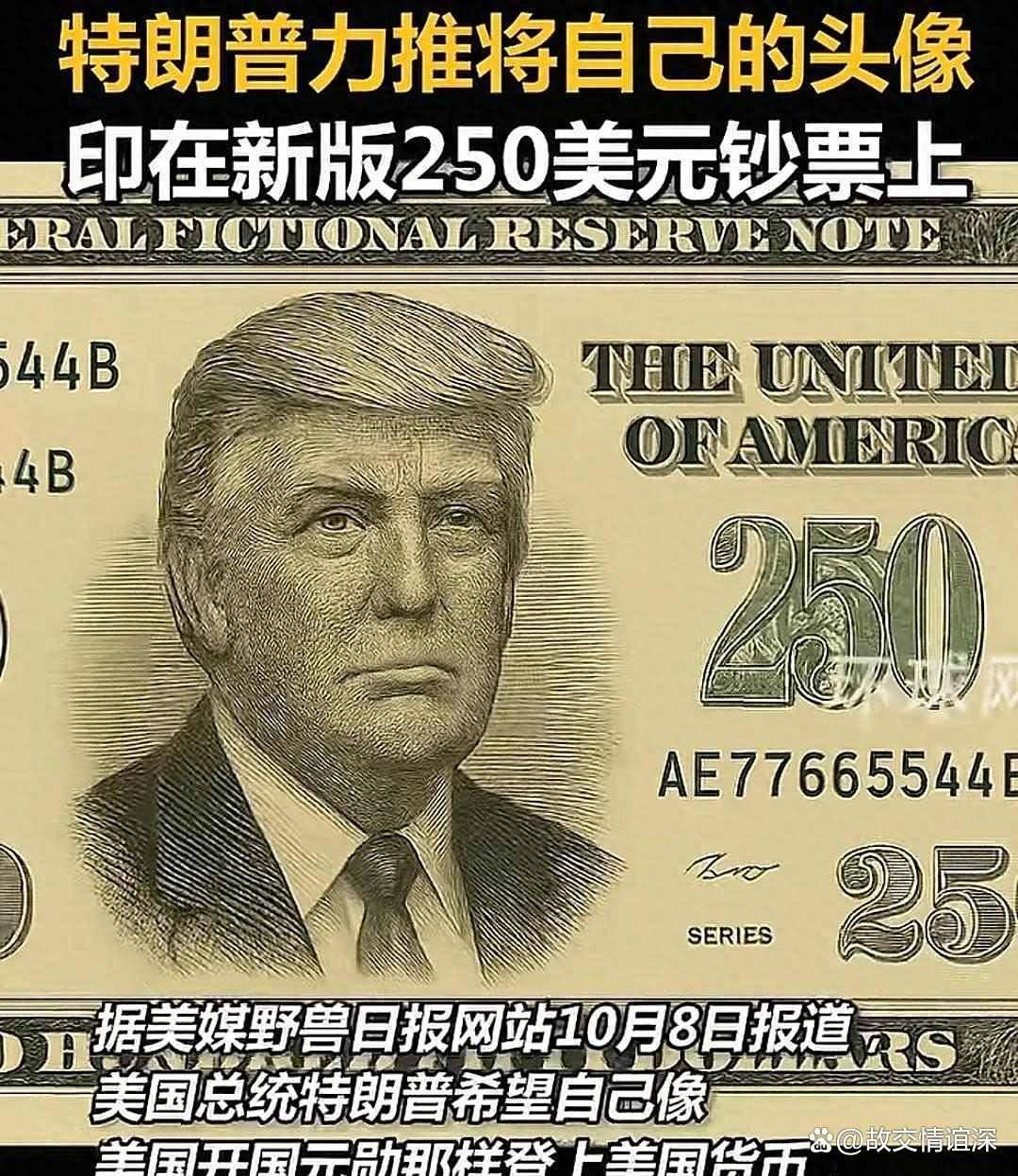 一张面额250美元、头像用特朗普的纪念钞,被一位共和党议员抬上台面,借1756–2026的“整年”作文章。先别急着笑“二百五”的中文谐音,这个提议真正扎到传统神经的,是把“活人上钞”当成政治装置。