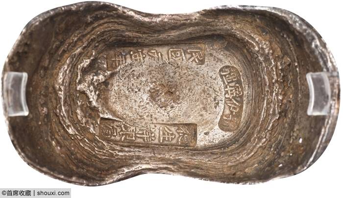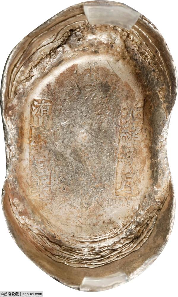 清代山东盐课同裕公十两,中乾-AU53,399.4g,深褐包浆,痕迹自然,4400美元落槌;上海二七宝同千五十两,GBCA-AU50,1840.5g,包浆浓郁,验槽端正,8000美元落槌;清代山西宣统年月归化城李发祥五十两镜宝,GBCA-AU50,1857.2g,灰色包浆,轻微积土,7500美元落槌。