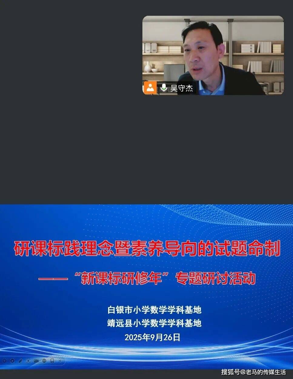 金秋聚云端,专研践理念。为进一步深化全市小学数学教学改革,依据市教育局确定的“新课标研修年”活动要求,9月26日晚,白银市小学数学学科基地(靖远县)通过腾讯会议平台举行了“研课标践理念暨素养导向的试题命制研讨”。活动以“微讲座+深度研讨”形式展开,四位主讲人倾囊相授,与会教师思维碰撞,共同探讨新课标下的教学革新之路。