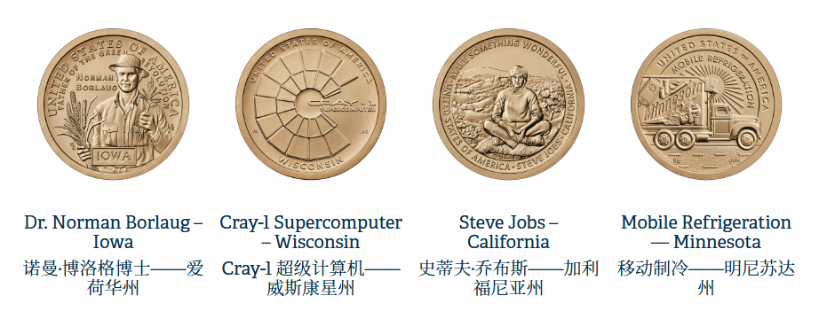 钛媒体App 10月16日消息,美国铸币局当地时间10月15日公布了2026年“美国创新”1美元纪念币的设计方案,这项始于2018年的多年期系列计划通过发行1美元纪念币,表彰美国创新成就及个人或团体的重要创新与开拓性贡献。据介绍,苹果公司联合创始人史蒂夫·乔布斯将出现在明年美国创新1美元硬币计划中的一枚硬币上。这枚纪念币的设计呈现了乔布斯年轻时的经典形象:身穿高领毛衣、牛仔裤和运动鞋。硬币上刻有“创造美好”(Make Something Wonderful)等字样。这枚乔布斯纪念币将在2026年正式发行,届时可通过美国铸币局官网购买,单枚售价13.25美元,四枚套装售价27.50美元。其余三枚硬币将分别致敬:爱荷华州的诺曼 博洛格博士(Dr. Norman Borlaug)、威斯康星州的Cray-1超级计算机,以及明尼苏达州的移动制冷技术。