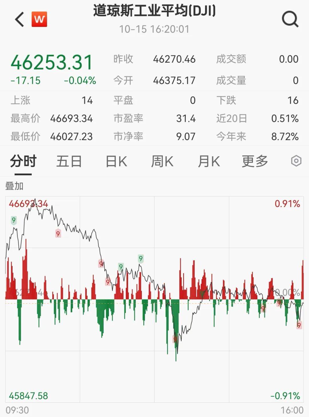 美国三大股指收盘涨跌不一,道指跌0.04%报46253.31点;标普500指数涨0.4%报6671.06点;纳指涨0.66%报22670.08点。