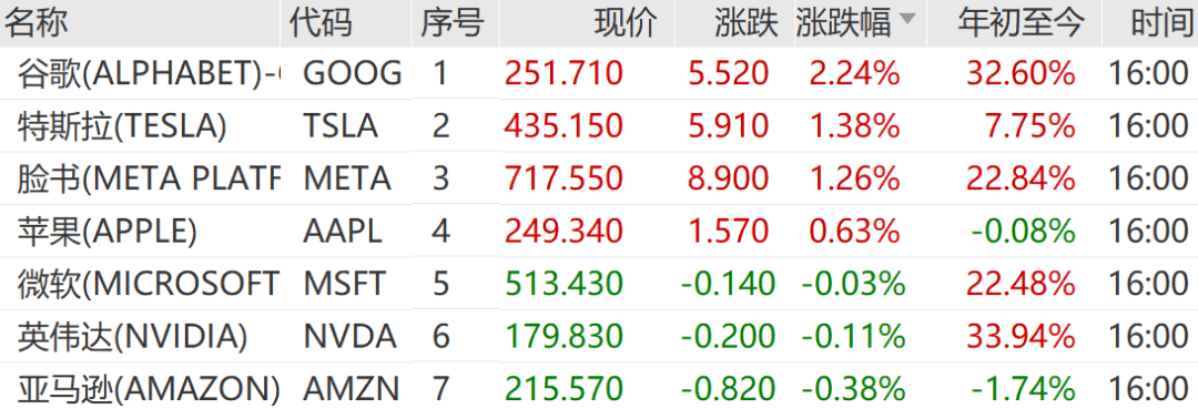 大型科技股多数上涨,万得美国科技七巨头指数涨0.59%,谷歌涨2.24%,特斯拉涨1.38%,脸书涨1.26%。