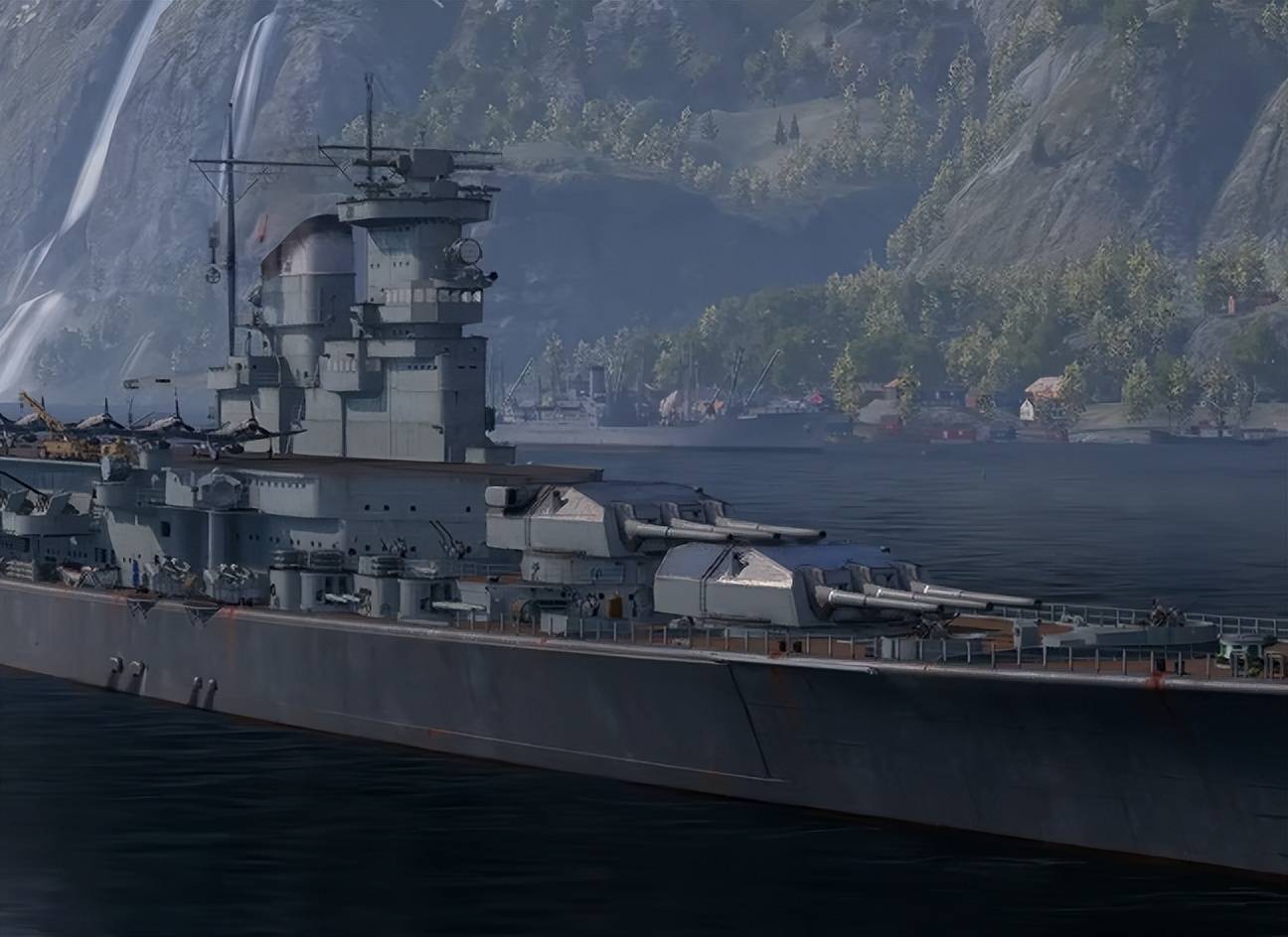 航空队的强势固然是希尔德布兰德的一大卖点,但所谓有舍就有得,它的主炮输出能力就不够强,但也就是不够强而已。希尔德布兰德的主炮是基于同为O计划船体的埃吉尔设计的,由于少了3门主炮,反而在数值上有了更大进步。
