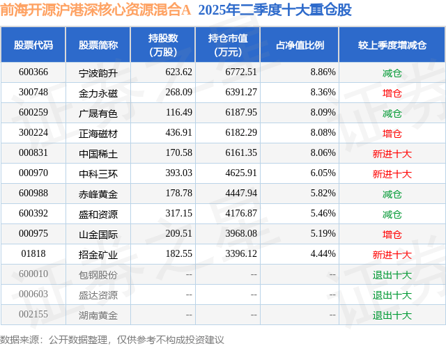 前海开源沪港深核心资源混合A的前十大重仓股如下: