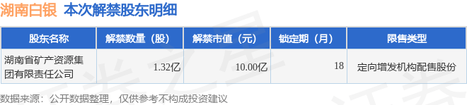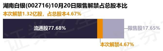 湖南白银(002716)1.32亿股限售股将于10月20日解禁,占总股本4.67%