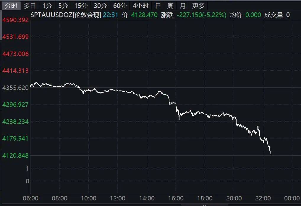 国际金价大跌,纽约期金跌破4200美元/盎司,下跌4%。现货黄金日内跌幅扩大至逾5%。