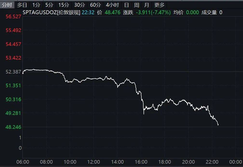 现货白银跌超7%。