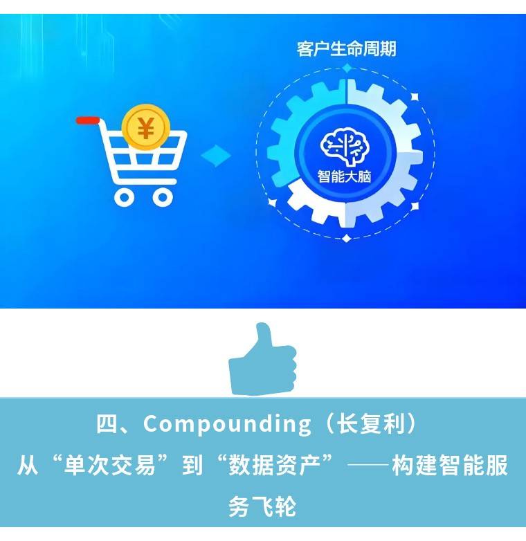 “长复利”的核心是将每一次客户互动转化为“数据积累”机会,通过数据整合、需求分析,实现“服务越深入、客户越精准”的智能飞轮效应。
