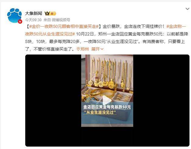 10月23日,话题#金价一夜跌50元顾客相中直接买走#,冲上热搜第一。