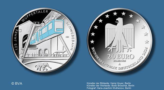 原定于明年1月22日发行、纪念伍珀塔尔悬空缆车落成125周年的20欧元纪念银币,总重量为18克,采用925银制成,含银量为16.65克。以目前的银价计算,材料价值约为23欧元。
