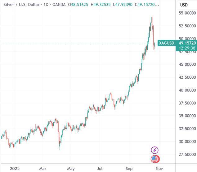 作为背景,现货白银上周创出每盎司54美元的历史新高,即便在近几日调整后,年内涨幅仍接近70%。