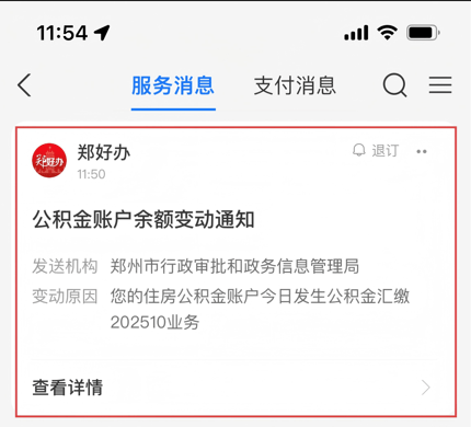 职工点击“支付宝”推送的信息,系统将自动跳转至“郑好办”平台的公积金服务,可查看业务办理明细。为确保信息及时触达,账户变动提醒服务在每日8时至20时进行实时推送。若出现账户已发生变动却未收到推送消息的情况,职工可核查“支付宝”与“郑好办”双平台实名认证信息的真实性与一致性,完成核验后,即可正常接收业务变动提醒。