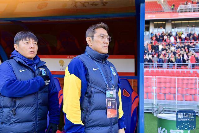 ↑ 南通支云队主教练金大仪(右)在比赛前。新华社记者 吴青昊 摄