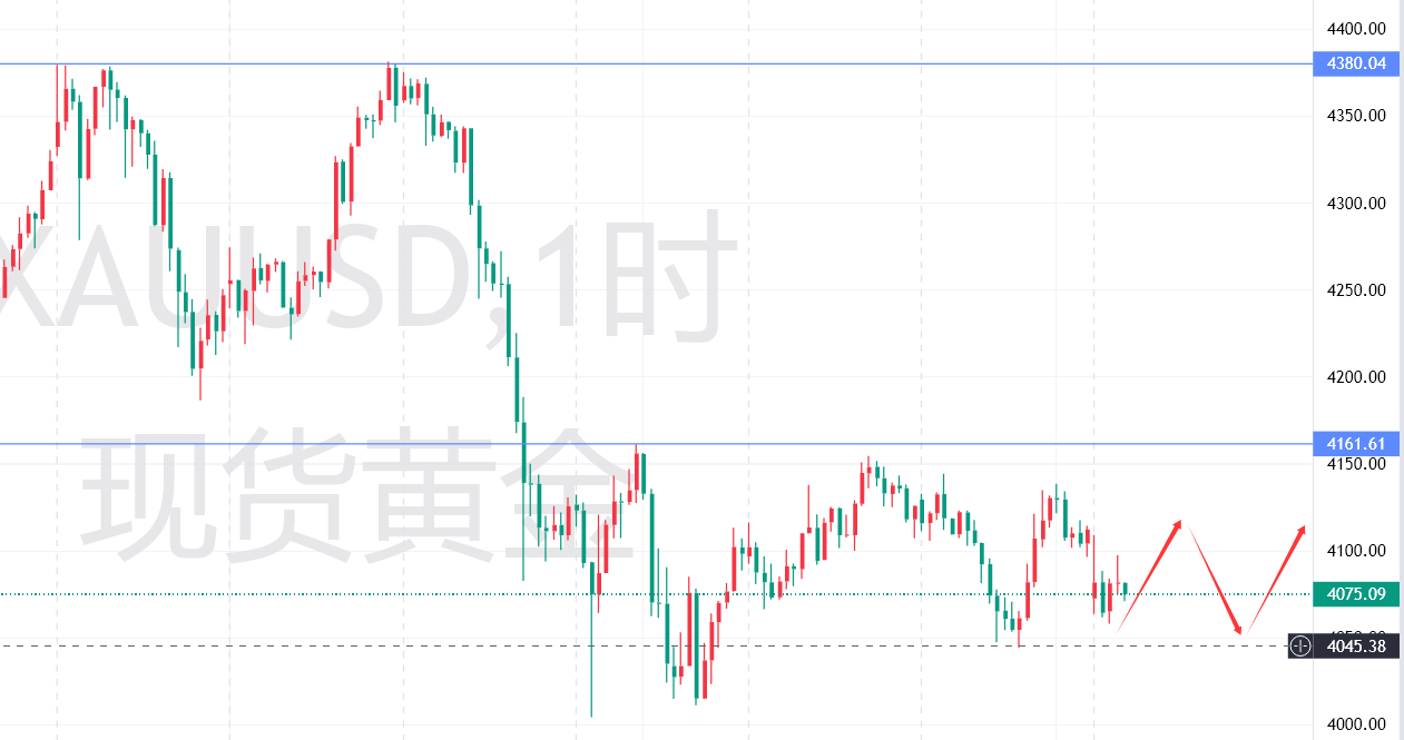 黄金在创出历史新高后获利了结,上周初高开在4354附近先拉升触及4382一线历史新高强势回落,周线最低触及4002附近尾盘拉升,周线最终收线在了4112一线以一根上下影线等长的大阴线收线。今日早盘低开后迅速反弹再次承压下行,与前期4044一线低点形成呼应,构成短期双底支撑雏形。短期内继续在一定区间内震荡,下方支撑关注4044一线,重点关注4000整数关口的支撑力度,上方关注4140-4165等关键阻力位,若跌破4000整数关口可能开启较大级别的调整。目前整体还是偏空,反弹的高点依次降低承压4165下整体都是继续偏空,上周五CPI利多,黄金也仅仅反弹到4140附近回落,早盘承压4140一线下空。