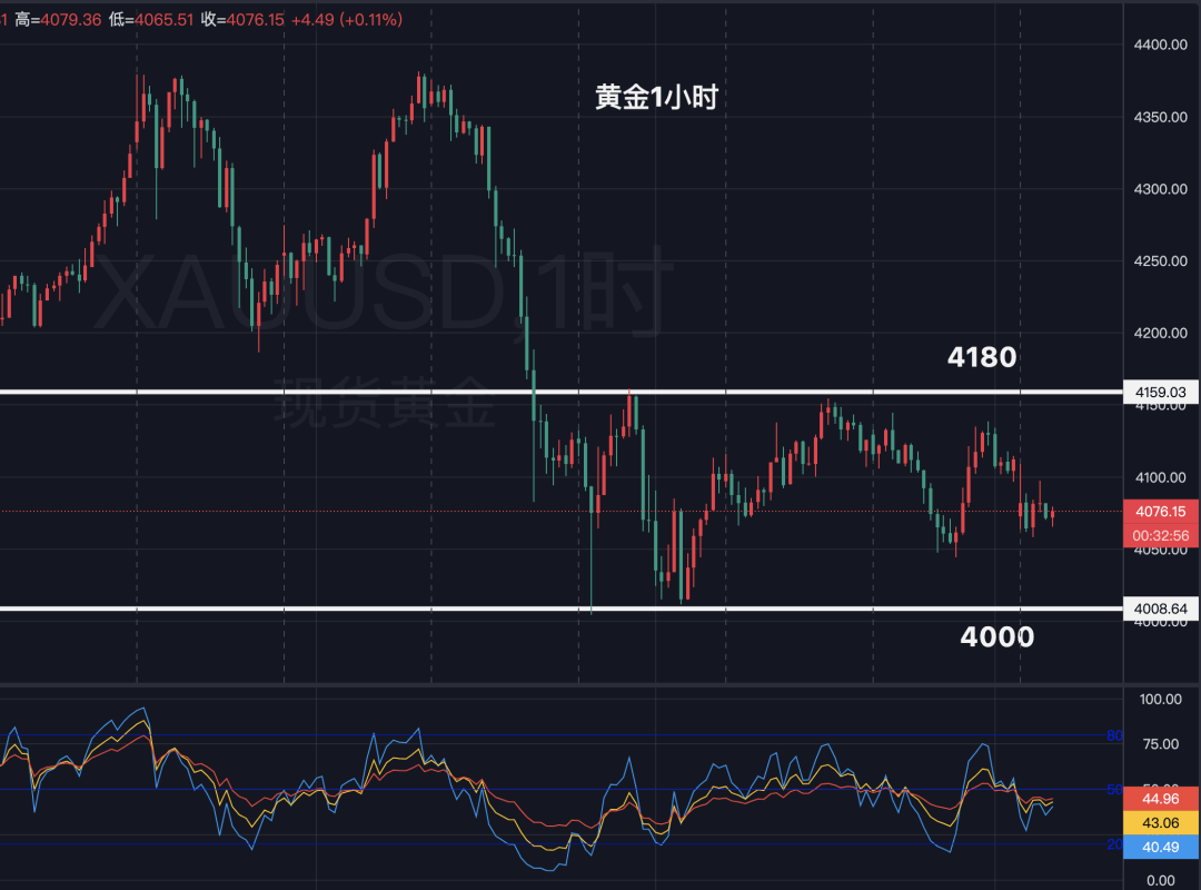 震荡行情重点卡区间,也就是4180-4000美元范围内波动,没有破区间之前对未来的预判都带有很强的主观预判,4000美元失守空头才能延续,而4180美元突破则预示短期调整结束。