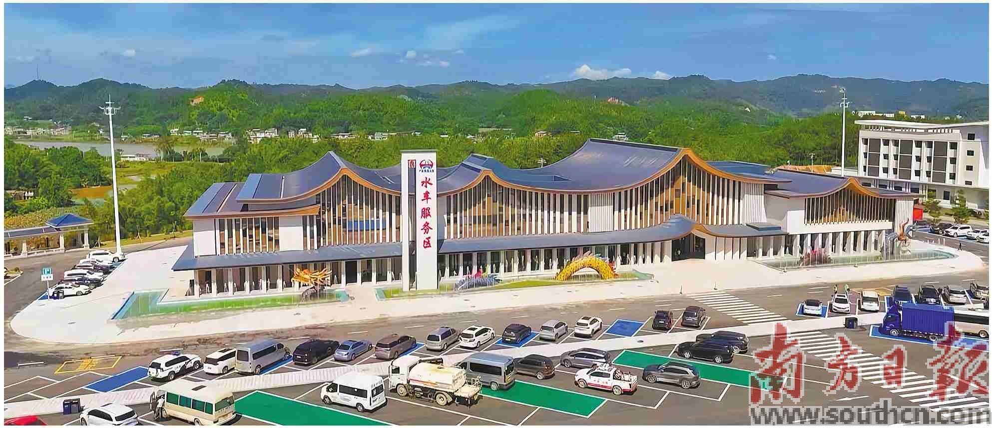 水车服务区以“山水入画、客潮交融”为核心主题,将自然地形与地域文化深度融合。涂盛楠 摄