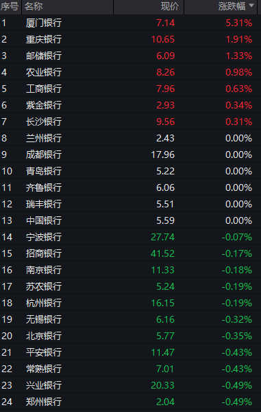银行股震荡下跌,早盘浦发银行直线跳水,盘中跌超5%。