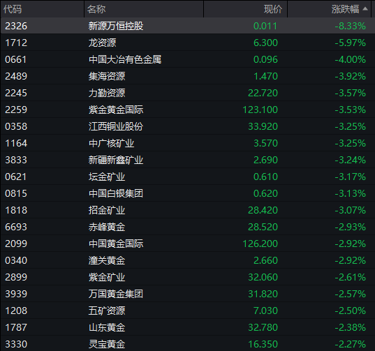 另一方面,亚洲早盘现货黄金下破3980美元,黄金股跌幅明显,铜等有色金属股齐跌。