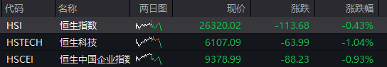 港股:截至发稿,恒指跌0.43%,恒科指跌1.04%。