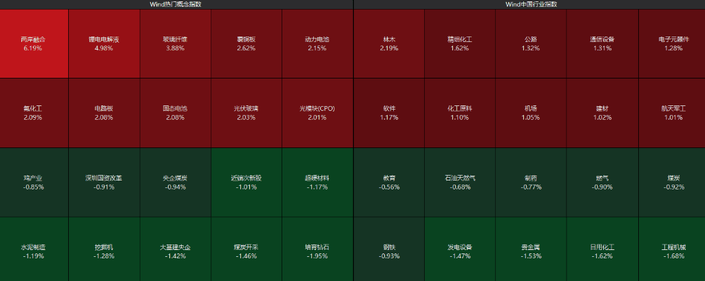 盘面上,个股涨多跌少,沪深京三市超3000股飘红,全市场上午成交1.36万亿,沪深两市半日成交额1.35万亿,较上个交易日缩量2155亿。板块方面,福建海西板块再掀涨停潮,CPO、覆铜板概念低开高走,券商股午前发力;培育钻石、煤炭、大基建板块普遍低迷。