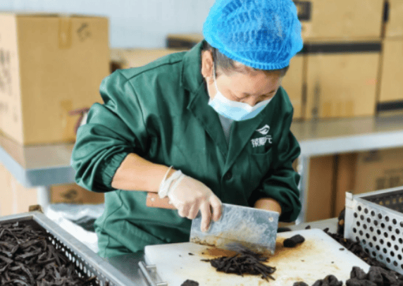 当地村民韦传琴在黄精加工厂就业。