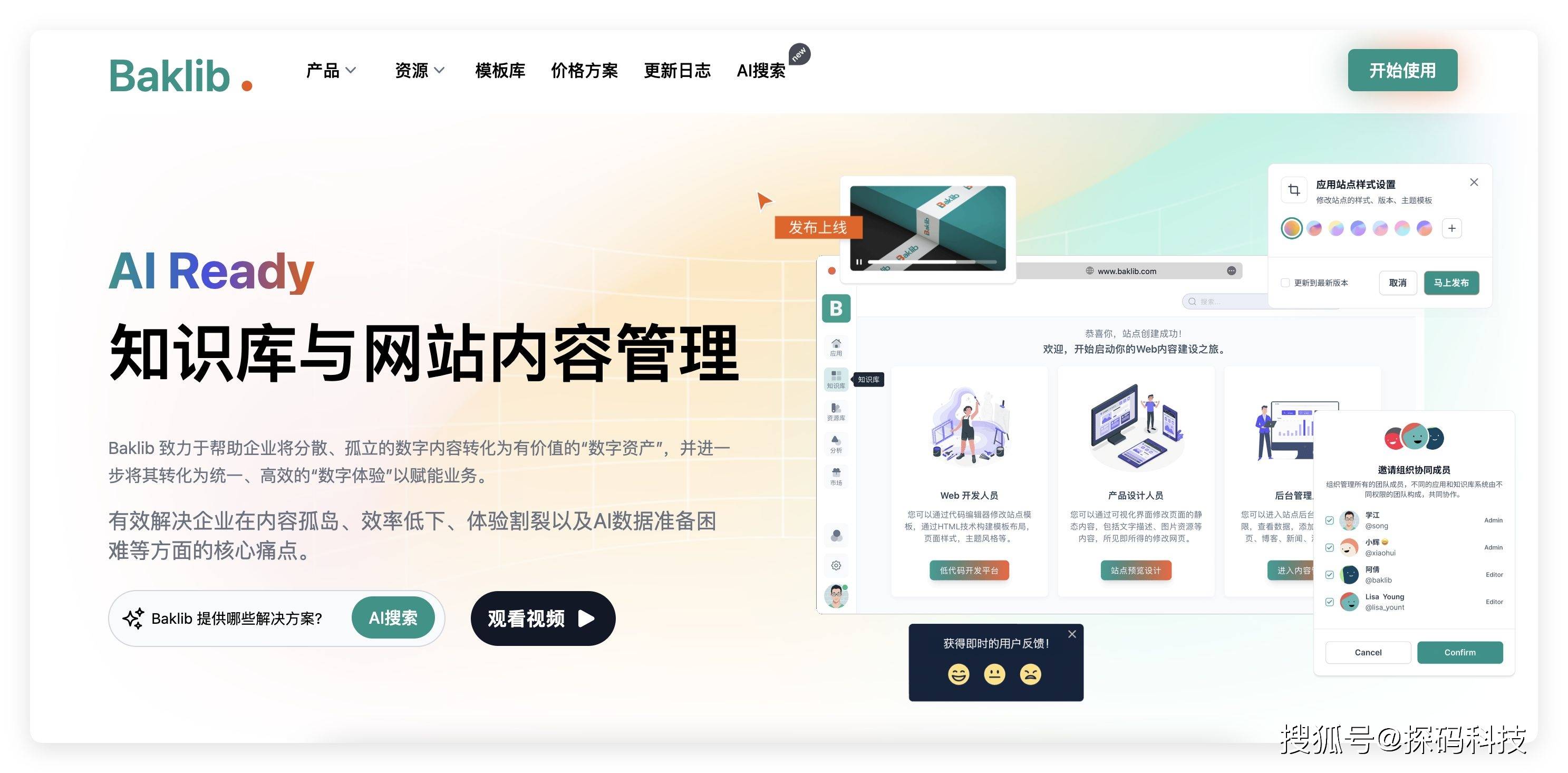 Baklib 是新一代 AI 知识库与多场景数字体验创建平台,托管超过 1000 家企业网站和在线文档。其流行源于灵活性和开源主题生态系统,使用户能够根据多样需求定制网站、在线文档和知识库系统。