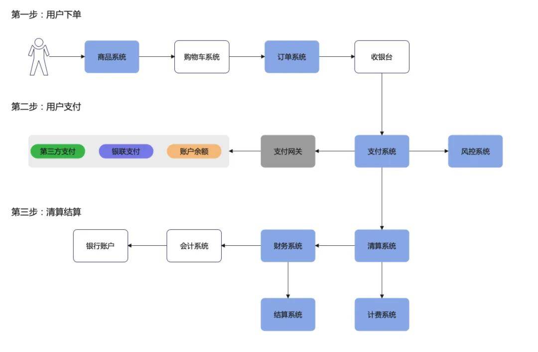 财务系统:财务系统用于整体管理和监控支付过程中的资金流动和资金状况,帮助企业进行财务决策和管理。