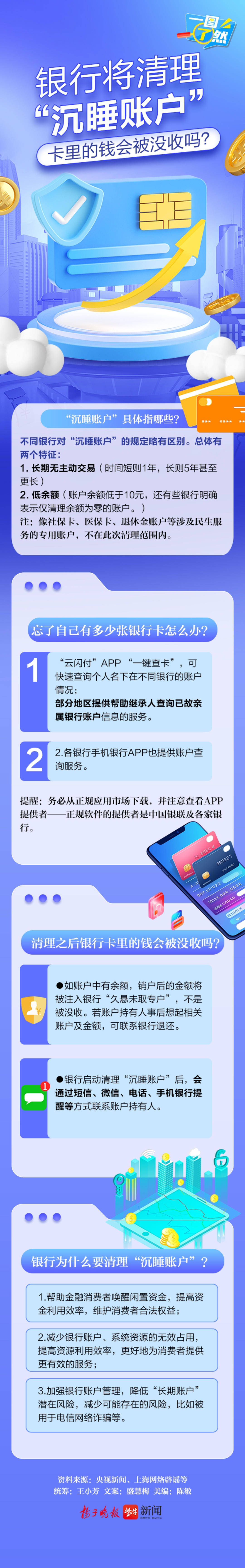 近期,多家银行发布公告要清理长期不动的账户,也就是所谓的“沉睡账户”。对于这一涉及自身账户的清理行动,不少网友表示此前并未收到银行方面的相关通知,面对账户可能被管控或清理的情况,不知道需要自己做什么。那么,什么是“沉睡账户”?会不会影响到自己的权益?清理之后银行卡里的钱会被没收吗?银行清理“沉睡账户”的目的是什么?