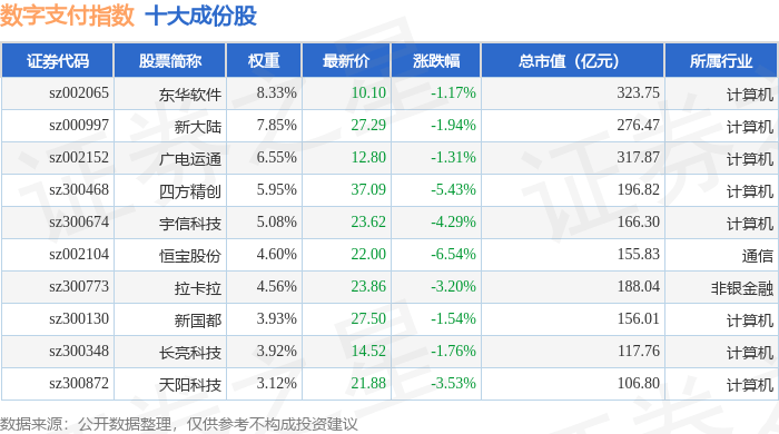 数字支付(980113)指数十大成份股详情如下: