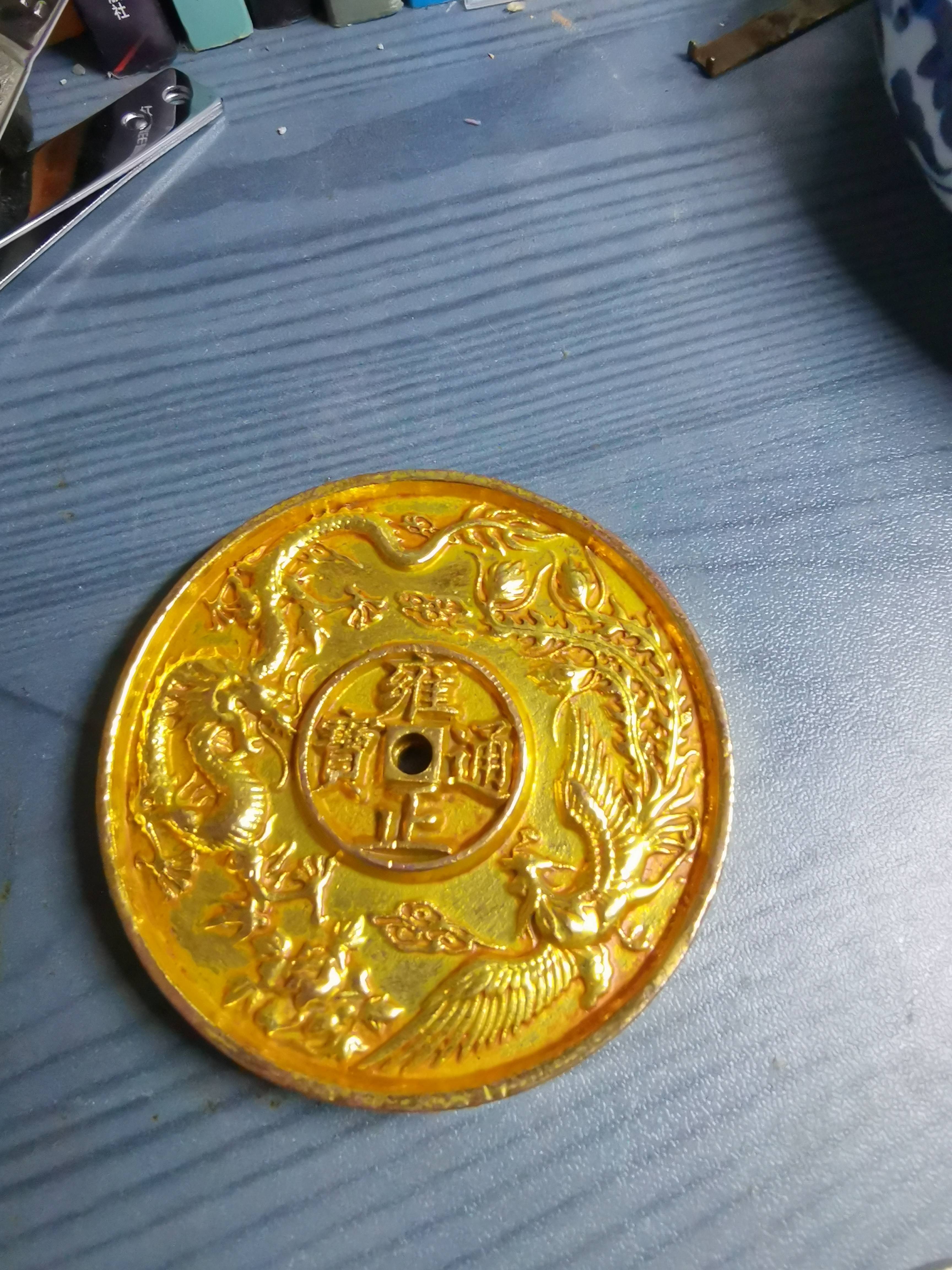 其正面中心的圆孔设计,既可能源于古老的“天圆”宇宙观,也极具实用性,便于将其高悬于梁柱或重要位置,达到“镇”的效果。双面环绕的龙凤图案,则将其等级提升至皇家规格,暗示其可能与宫廷内库或国家级铸币机构有着直接关联。