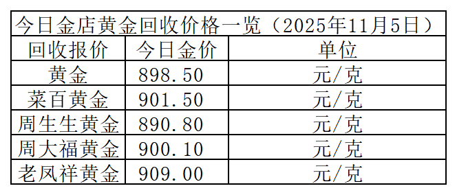 另外,今日黄金回收价格也是大跌8.5元/克。不同品牌回收价差较大,以下为部分金店回收参考价: