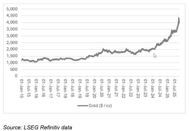 2015年之后,黄金开始悄然上涨,Mould指出,“远在新冠疫情、封锁措施、政府巨额补贴出现之前,更不用说关税和贸易战、中东新一轮动荡以及东欧战争了。”