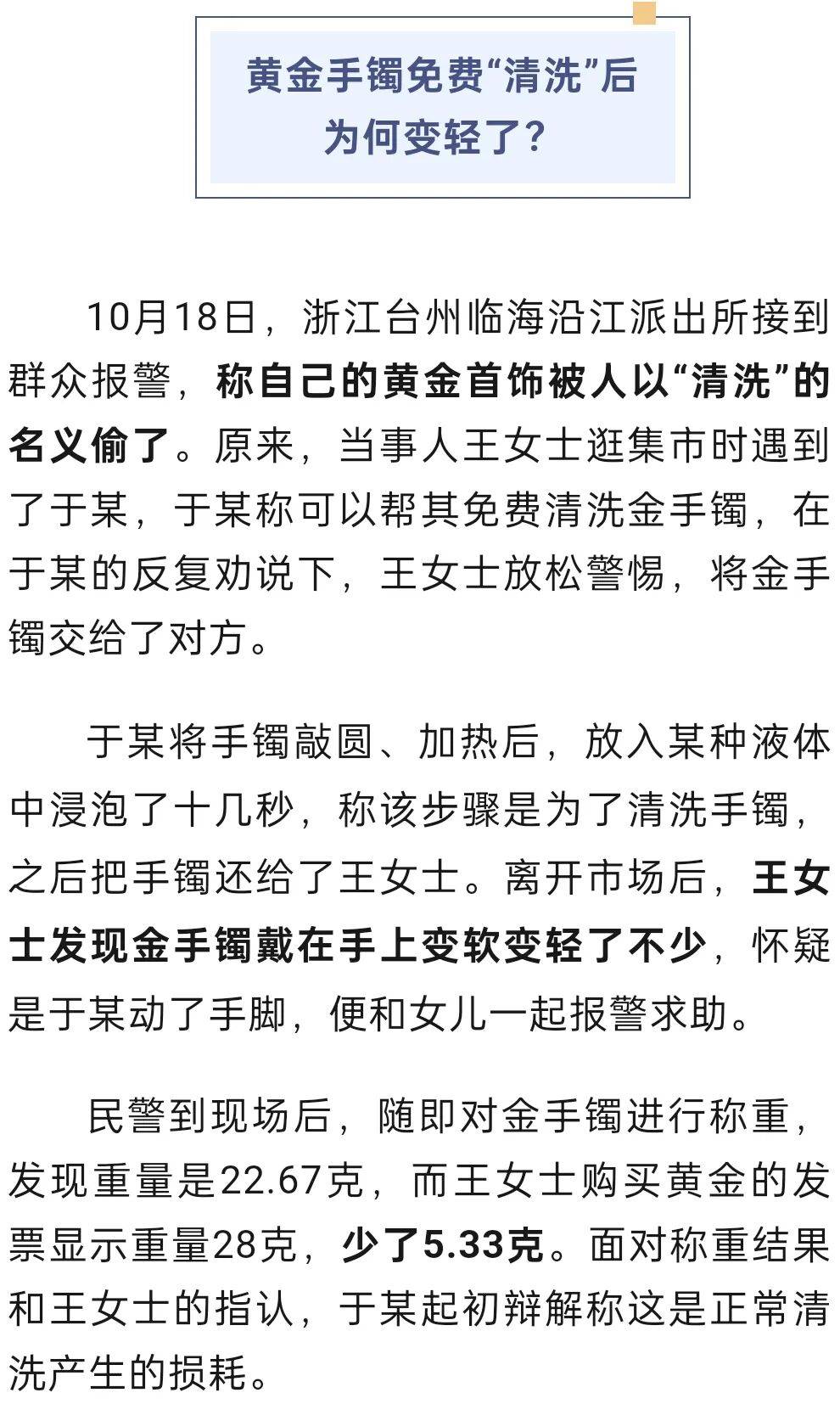 民警提示,消费者在日常保养黄金时,要做好清洗前后的称重记录,避免不必要的损失。