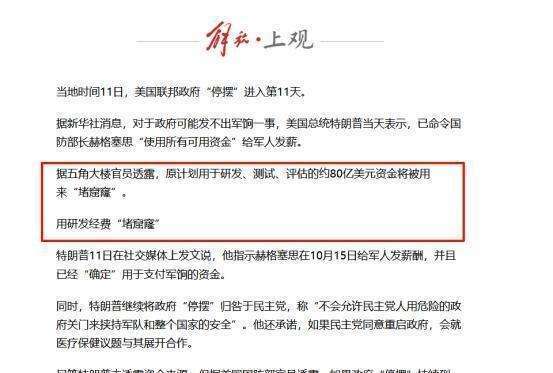 眼看局势越闹越大,政府必须想办法应付,但他们想到的办法有点“拆东墙补西墙”。特朗普政府宣布找到80亿美元专门用来给军队发工资,但这笔钱不是凭空出现,而是从军事科研经费里挪出来的。也就是说,原本用于研发新武器和技术的钱,先被用来发工资。这个办法虽然暂时解决了燃眉之急,但显而易见,只能应付当月问题,下个月怎么办依然未知。