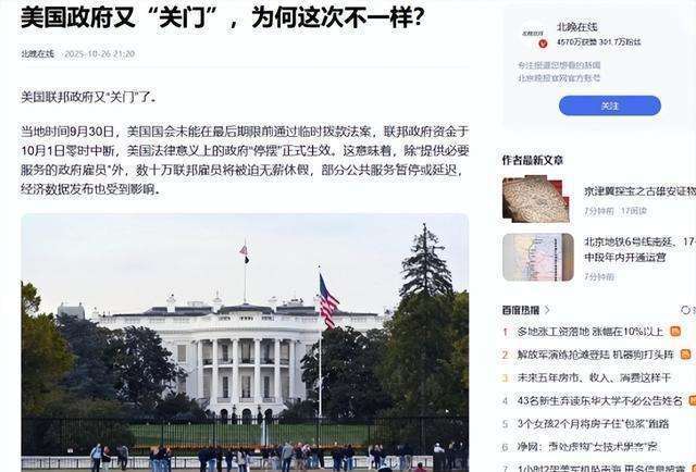 政府关门的影响不仅波及军队,全美大约75万名联邦雇员也被迫放无薪假。像边境巡逻队、机场空中交通管制员这些关键岗位的人,仍要上班,但拿不到工资。国会游客中心关门,办理护照、绿卡的进程被拖慢,一场政治斗争影响到了每个人的正常生活。
