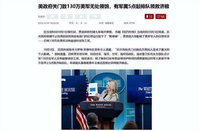 更讽刺的是,当士兵们为家里的柴米油盐发愁时,美国总统特朗普却毫不着急。他忙着筹备10月13日的美国海军成立250周年庆典,还宣称这是历史上规模最大的庆典。有人质疑政府关门怎么还能办庆典,他就把责任推给民主党,称他们故意捣乱。于是,形成了一幅滑稽画面:早上士兵可能刚从救济站领了面包,下午却得穿上礼服去参加总统的豪华派对。基层的困境与高层的政治秀形成了鲜明对比,而工资危机短期内看不到解决希望。白宫方面表示,如果到10月15日钱还没发,那10月份的工资没了,11月份的也可能跟着受影响。