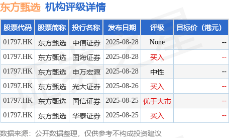 截至2025年11月10日收盘,东方甄选(01797.HK)报收于21.62港元,上涨6.61%,成交量2192.24万股,成交额4.71亿港元。投行对该股的评级以买入为主,近90天内共有3家投行给出买入评级。中信证券最新一份研报给予东方甄选None评级。