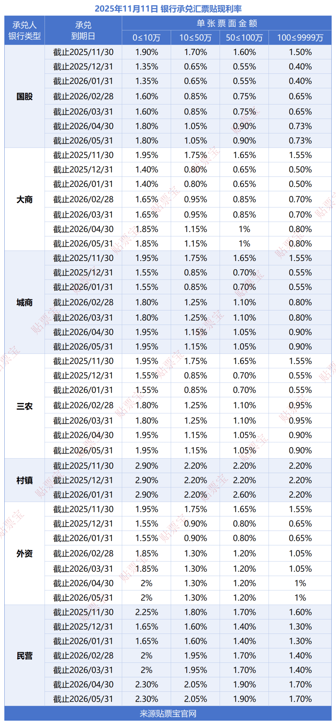 承兑贴现计算公式:贴现利息=票面金额×贴现利率÷360×剩余天数;到账金额=票面金额-贴现利息。通过贴票宝可查询承兑贴现利率!