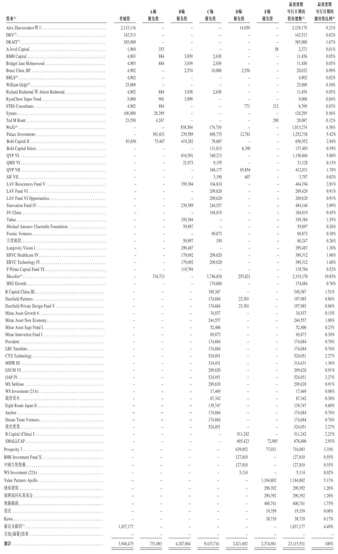DKV持股0.62%,DKAIT持股1.67%,WuXi Pharma Tech Healthcare Fund持股为4.38%,Bold Captial II持股为2.84%,Bold Captial Select持股为0.59%,QVP VII持股为1.78%,LAV Biosciences Fund V持股2.01%,LAV Fund VI、LAV Fund VI Opportunities持股0.91%;