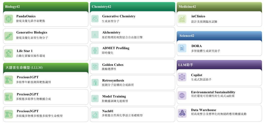 Pharma.AI由Biology42、Chemistry42、Medicine42及Science42组成,旨在涵盖整个药物发现和开发过程。Pharma.AI能够识别新的药物靶点,针对新型及已有的靶点从头设计,并优化候选药物的临床开发。
