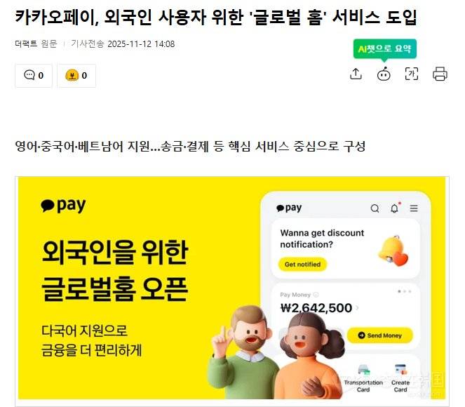 为了提升外国用户的金融便利性,Kakao Pay 推出了“Global Home(全球主页)”服务。