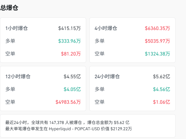 加密货币方面,多数加密货币下挫,比特币跌1.04%,索尔币跌近2%。据CoinGlass数据显示,过去24小时内,加密货币共有超14万人爆仓。