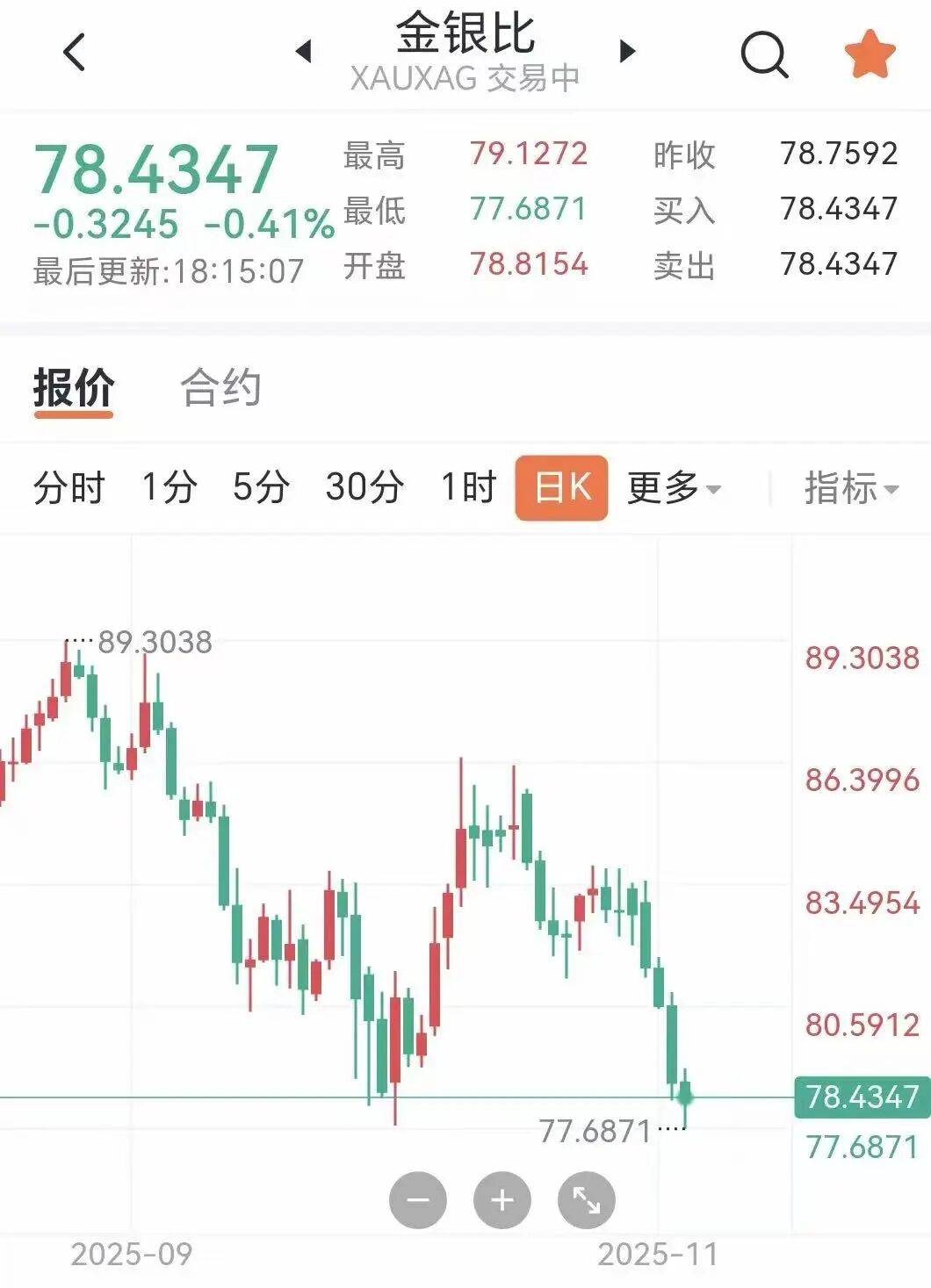 不过,钟俊轩也表示,短期内白银价格冲高回踩的风险仍不可忽视,金银比或会有所反弹。