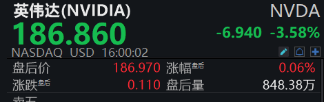大型科技股多数下跌,特斯拉跌超6%,英伟达跌逾3%,谷歌、亚马逊跌近3%,微软跌超1%,苹果跌0.19%,脸书涨0.14%;其中,英伟达市值一夜蒸发1686.42亿美元(约合人民币11966.67亿元)。