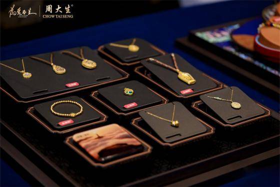 《吉祥布达拉系列》,以布达拉宫吉祥八宝、转经筒为设计元素,运用仿古绢画工艺,呈现藏地文化;《福韵国宝系列》,以《国家宝藏》栏目展演的文物为灵感,运用青花瓷、釉彩等非遗技艺,再现国宝文物美学精髓;《平安泰山系列》,灵感源自泰山文化,融入石敢当、黄釉葫芦瓶元素,传承2000年泰山祈福文化,寓意平安吉祥;《如意普陀系列》,以普陀山莲花、紫竹林为灵感,配以传统手工缂丝技艺展现慈悲庄严,诠释禅意珠宝美学。新品涵盖吊坠、手串等品类应有尽有,欢迎进店试戴品鉴。