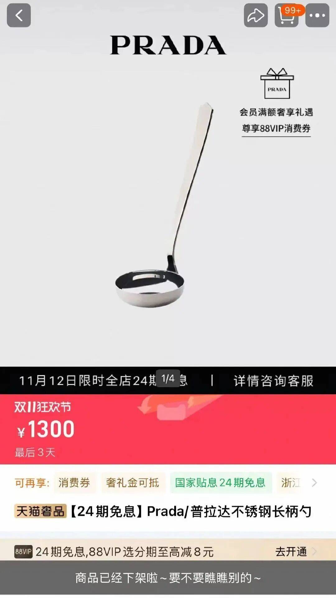 一把不锈钢汤勺卖1300元?Prada客服:所有涉及技术及监管均来自意大利,目前因售罄已下架