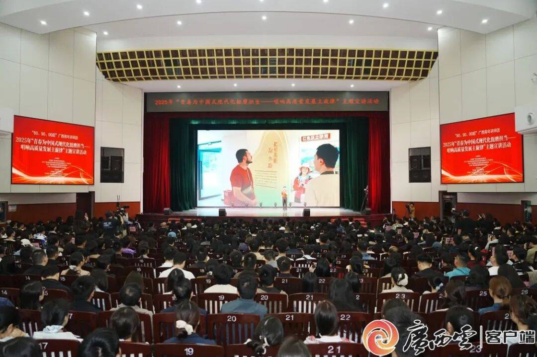 11月10日,“80、90、00后”广西青年讲师团“青春为中国式现代化挺膺担当——唱响高质量发展主旋律”主题宣讲活动在广西大学举办。本次活动邀请9位来自不同行业领域的优秀青年讲师,紧扣“高质量发展”与“青年担当”主题,结合自身工作岗位和实践经历,呈现了一场有深度、有温度、有力度的青年理论宣讲。