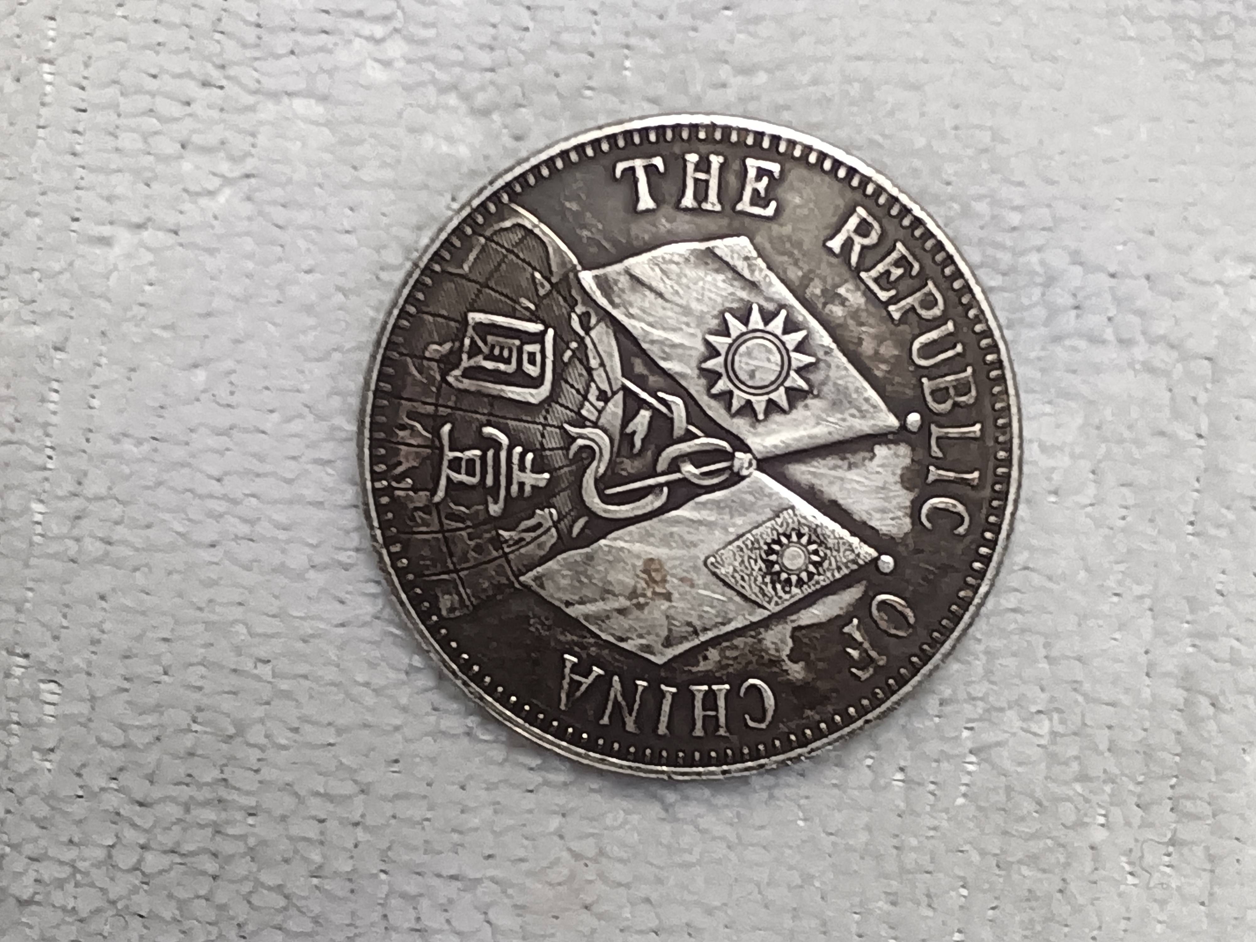 背面设计则是政治符号的集中体现:地球图案占据币面主体,经纬线刻画清晰,象征“天下为公”的世界视野;地球之上交叉竖立青天白日满地红旗(民国国旗)与青天白日旗(国民党党旗),旗帜的褶皱、旗杆的绳结均细致入微,旗面的太阳图案光芒分明——这一设计既彰显了政权的正统性,也暗含“以党治国”的时代特征。币面左侧的“壹圆”二字采用魏碑体,与外圈英文“THE REPUBLIC OF CHINA”形成中西文字的呼应,体现了民国初期“接轨世界”的文化心态。