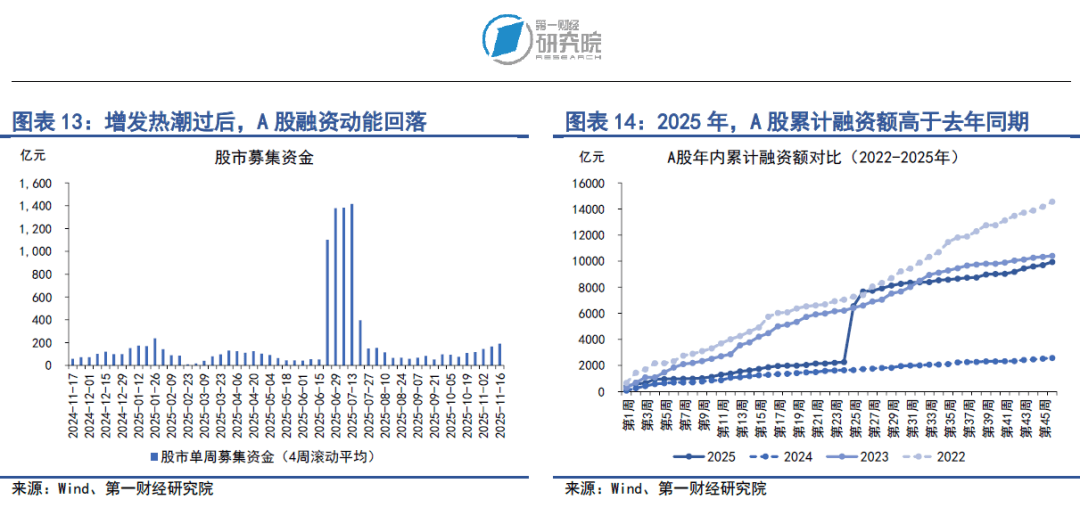 在11月10至11月14日当周,A股融资总额为241.26亿元,较前一周上升136.79亿元。年内,A股累计融资额为9940.9亿元,高于往年同期。值得注意的是,目前A股融资主要集中于增发和可转债,A股IPO融资金额年内累计金额为972.51亿元,占总融资的比重为9.78%。