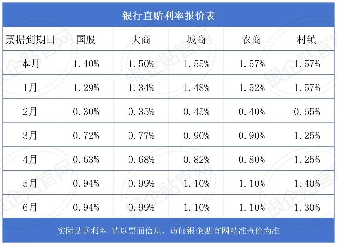今日承兑汇票贴现利率整体延续震荡回升态势。根据银企贴官网报价,国股、城商、农商、村镇等主要承兑行的直贴利率如下图所示(以票据到期区间为准)。